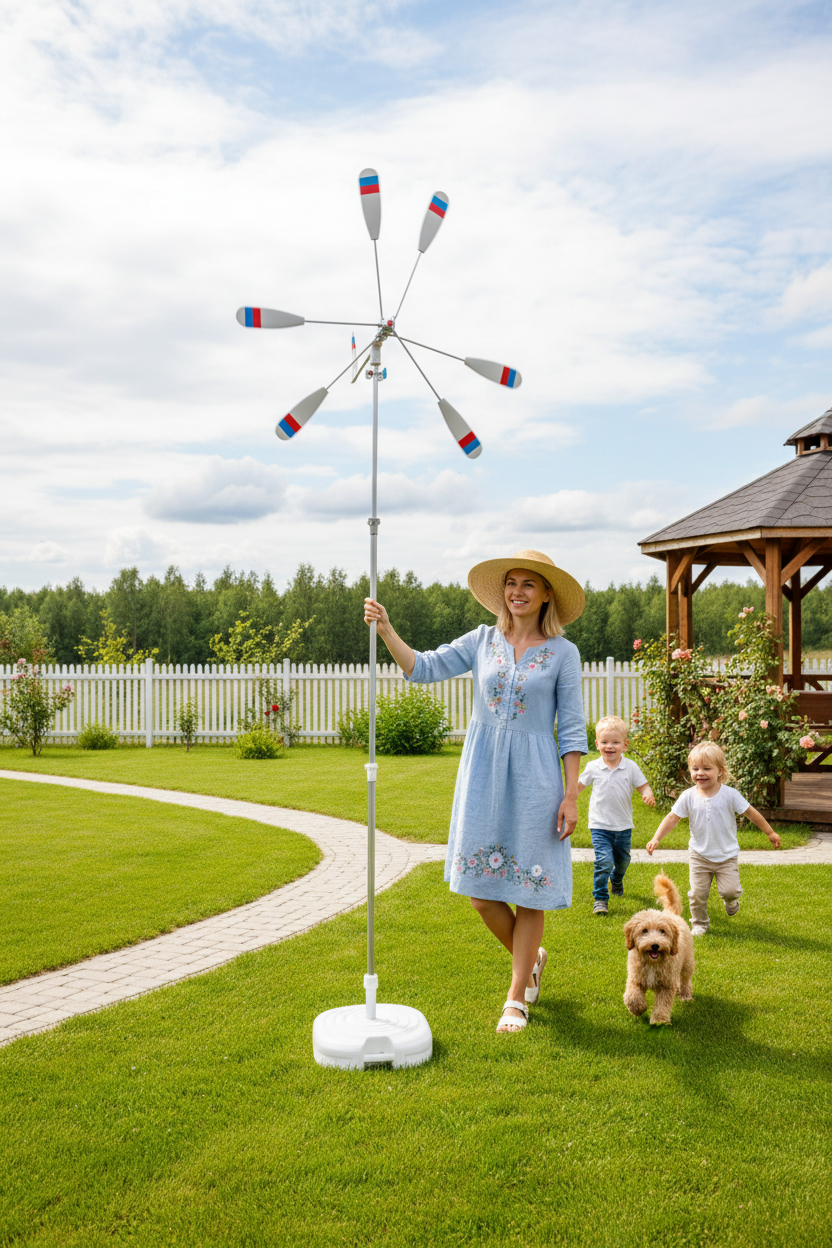 - Длина садовой фигуры 990 мм обеспечивает хороший поворот и удержание по направлению ветра.